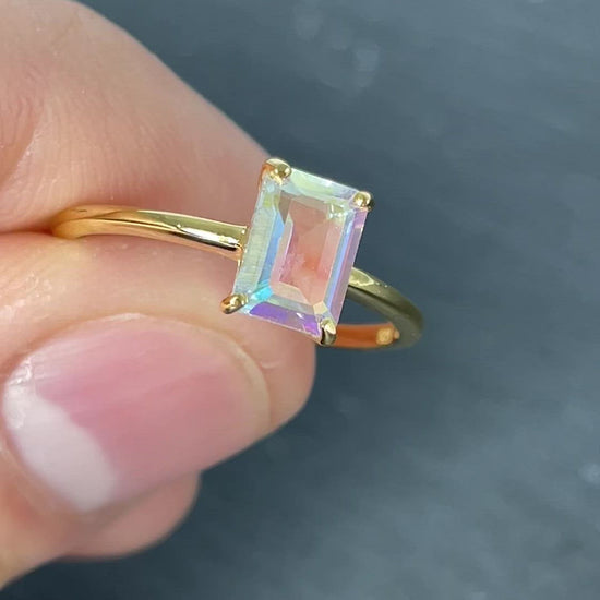 Iridescent Mystic Topaz Ring || 14K Vermeil Yellow Gold || USA