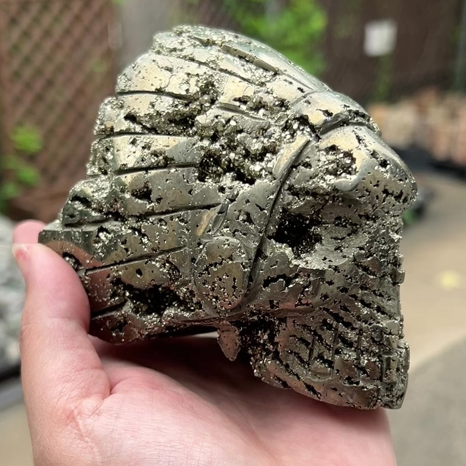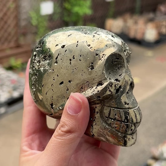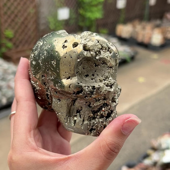 Our Pyrite Skulls is half smooth and polished revealing natural pockets and sheen. Imported from Peru and has 3 options to choose from, great to add to ones collection, home decor and more!