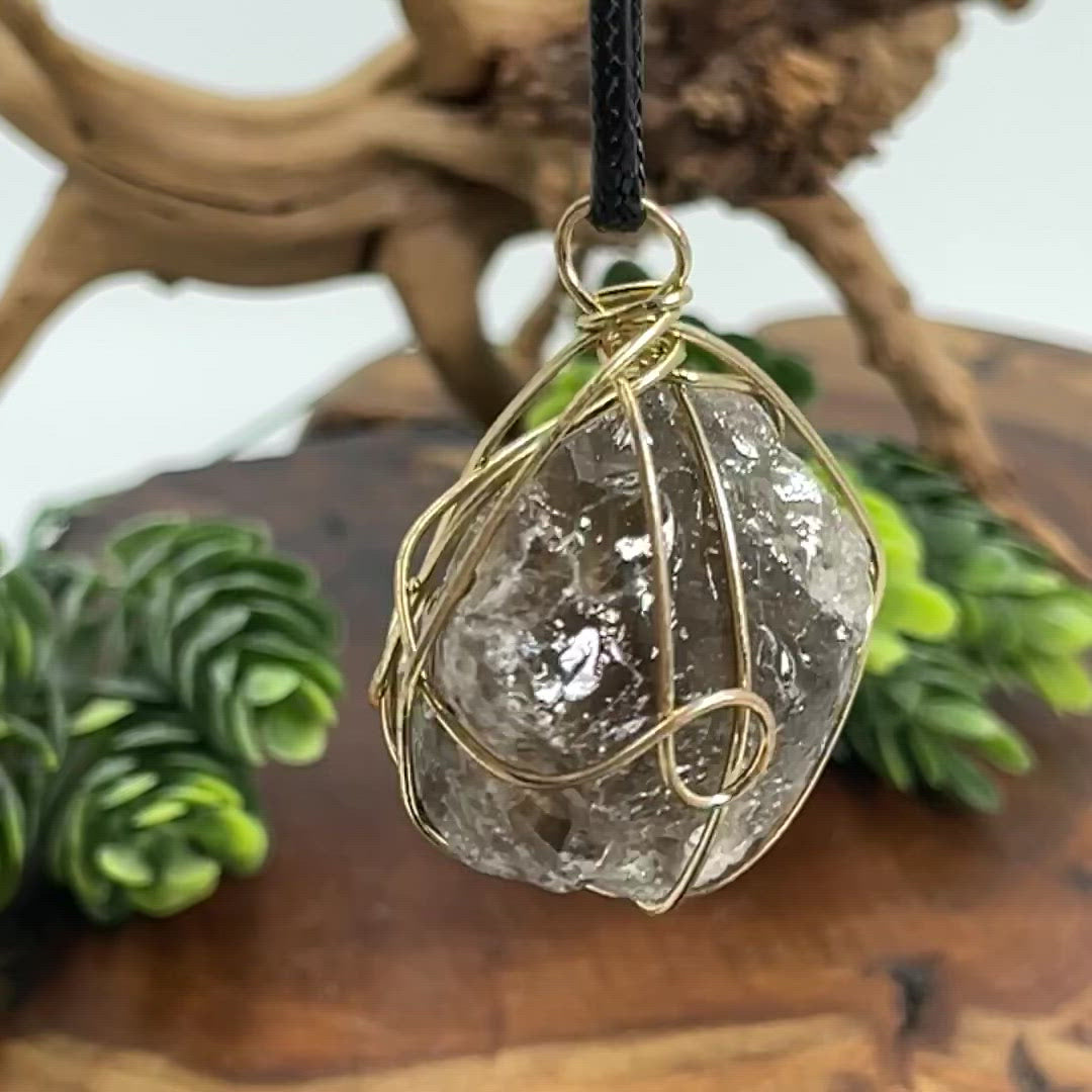 These juicy Smoky Quartz Pendants are raw crystals, wrapped securely in plated gold wire allowing light to display all the natural features & rainbows in the stone. Each one of these was hand wrapped from our source! These Smoky Quartz pendants has been blessed and cleansed by one of our staff members here at Nature's Treasures with love and light!