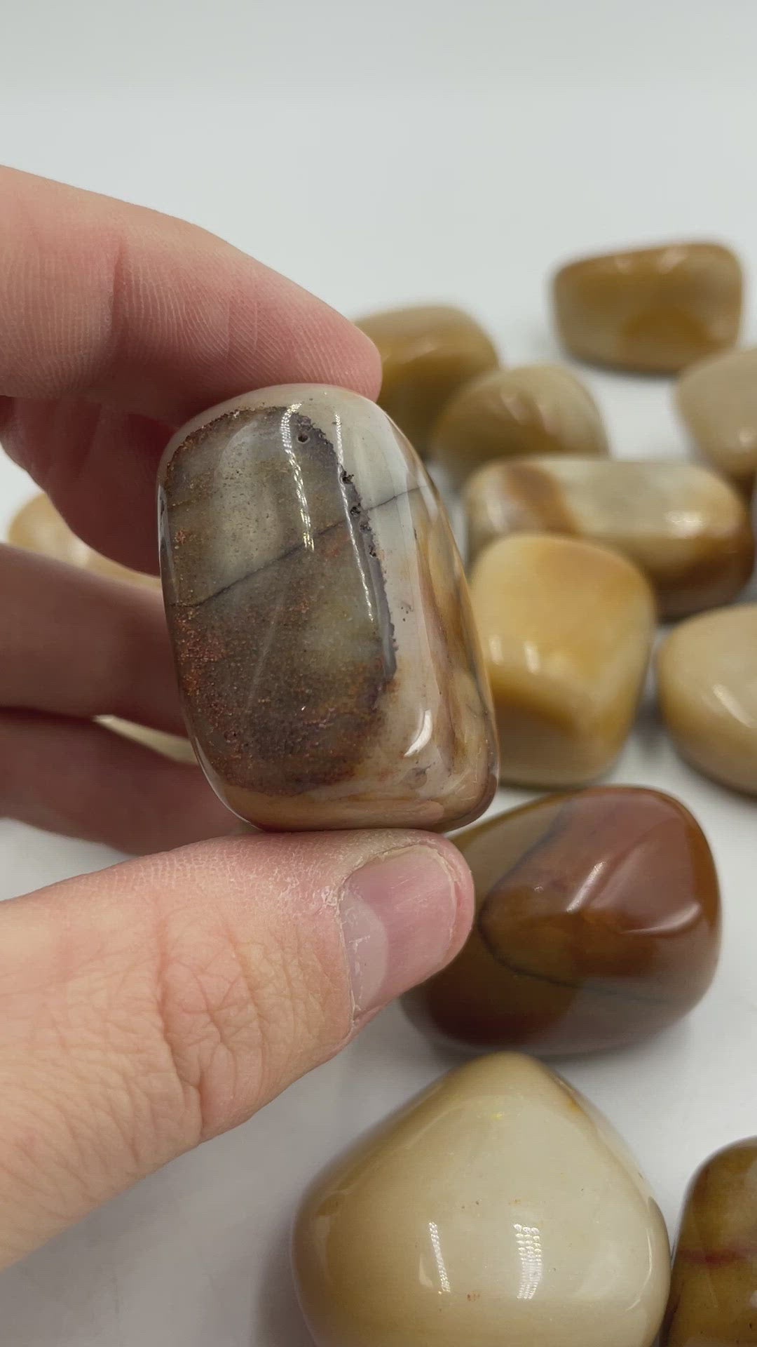 TheseNatural Moonstones also called Common Moonstone, polished and shaped into Tumbles, making them pocket size and hand size tools.Moonstoneis a feldspar mineral,a Potassium Aluminum Silicate with a crystal system of Monoclinic and Prismatic and a hardness of 6 to 6.5.Moonstone range in colors from white, blue, silver, moonstone neutral colors, green, yellow, brown, black.