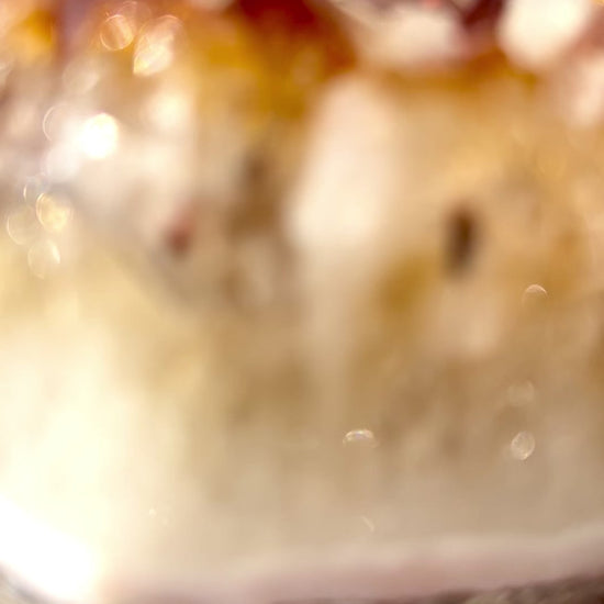 This Citrine Product is derived from treated Amethyst. According to accepted gemology terminology, Citrine derived from Amethyst is still technically Citrine and can be labeled as such.